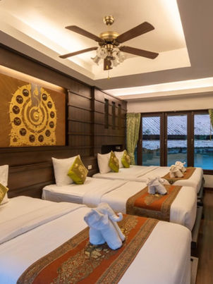 Fauna Family Bungalow is deluxe family room approximately 24 sqm./1 king size and 2 single beds (max 4 persons)